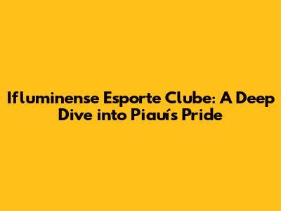 Hey guys! Let's dive deep into the heart of Brazilian football and explore Ifluminense Esporte Clube, a team that represents the spirit and passion of Piauí. This isn't just another football club; it's a symbol of local pride, community, and the relentless pursuit of sporting glory. We're going to cover everything you need to know about this amazing club, from its humble beginnings to its current aspirations.