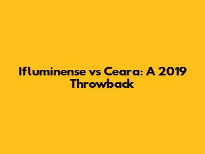 Ifluminense Vs Ceara: A 2019 Throwback