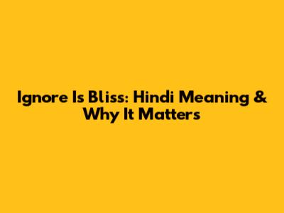 Ignore Is Bliss: Hindi Meaning & Why It Matters