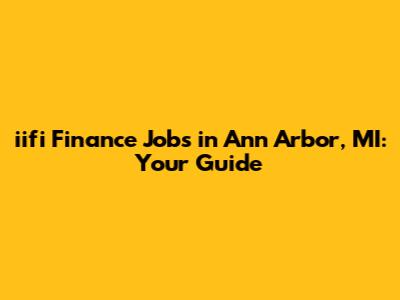 Iifi Finance Jobs In Ann Arbor, MI: Your Guide