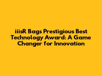 iiisR Bags Prestigious Best Technology Award: A Game Changer for Innovation