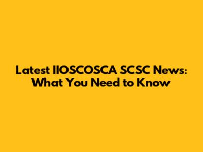 Latest IIOSCOSCA SCSC News: What You Need to Know
