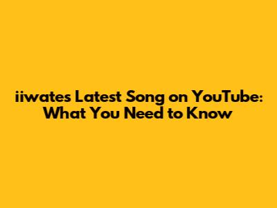 Iiwate's Latest Song On YouTube: What You Need To Know