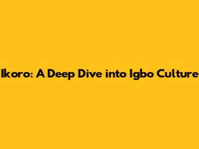 Ikoro: A Deep Dive Into Igbo Culture