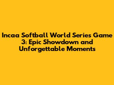 Incaa Softball World Series Game 3: Score, Highlights & Recap