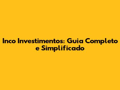 Inco Investimentos: Guia Completo E Simplificado