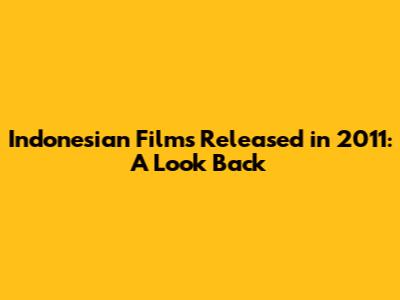 Indonesian Films Released In 2011: A Look Back