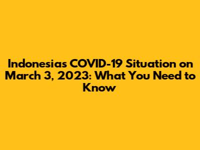 Hey everyone! Let's dive into the COVID-19 situation in Indonesia as of March 3, 2023. This article will provide you with a detailed overview, keeping you informed on the latest developments, data, and what it all means for you. We'll cover everything from case numbers and vaccination progress to the current health protocols and guidelines. So, grab a coffee, and let's get started. We aim to keep things straightforward and easy to understand, so you can stay updated without getting lost in the technical jargon. Understanding the pandemic's impact is crucial, and that's why we're committed to providing the most relevant information possible. We'll be looking at the numbers, but also at the bigger picture – how the virus is affecting everyday life and what the government is doing to manage the situation. Remember, the goal is always to stay informed and make the best decisions for ourselves, our families, and our communities. Let's make sure we're all on the same page. By staying informed, we can navigate the situation with a better understanding and plan accordingly.