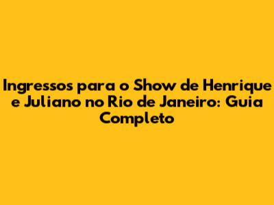 Olá, pessoal! Se você é fã da dupla sertaneja Henrique e Juliano e está ansioso para curtir um show incrível no Rio de Janeiro, você veio ao lugar certo! Neste guia completo, vamos desvendar todos os detalhes sobre os ingressos para o show, desde onde comprar, os preços, dicas para garantir o seu lugar e muito mais. Prepare-se para uma experiência inesquecível com os seus ídolos! Vamos lá?