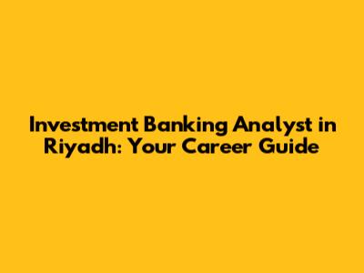 Investment Banking Analyst In Riyadh: Your Career Guide