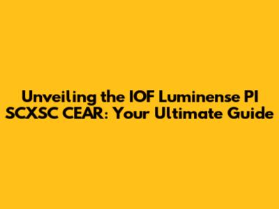 Unveiling the IOF Luminense PI SCXSC CEAR: Your Ultimate Guide