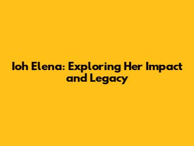 Ioh Elena: Exploring Her Impact And Legacy