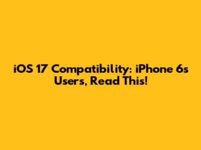 IOS 17 Compatibility: IPhone 6s Users, Read This!