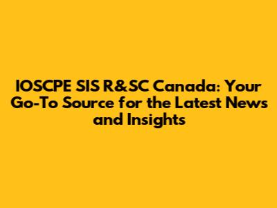 IOSCPE SIS R&SC Canada: Latest News & Updates