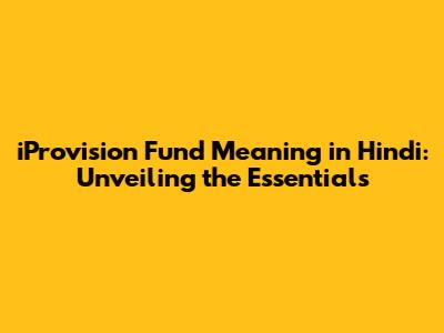 IProvision Fund: Hindi Meaning & How It Works