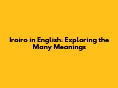 Iroiro In English: Exploring The Many Meanings