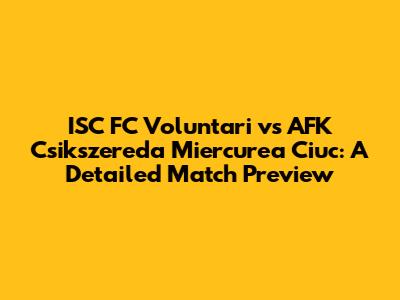 Hey guys! Get ready for an exciting showdown as ISC FC Voluntari takes on AFK Csikszereda Miercurea Ciuc. This match promises to be a thrilling encounter, and we’re here to break down everything you need to know before kickoff. From team form to key players, we’ve got you covered. So, let's dive right in!
