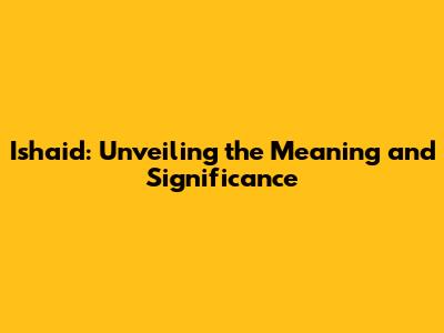 Ishaid: A Deep Dive Into Its Meaning And Significance