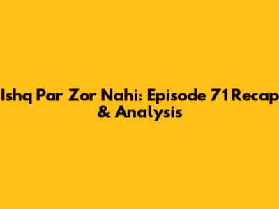 Ishq Par Zor Nahi: Episode 71 Recap & Analysis