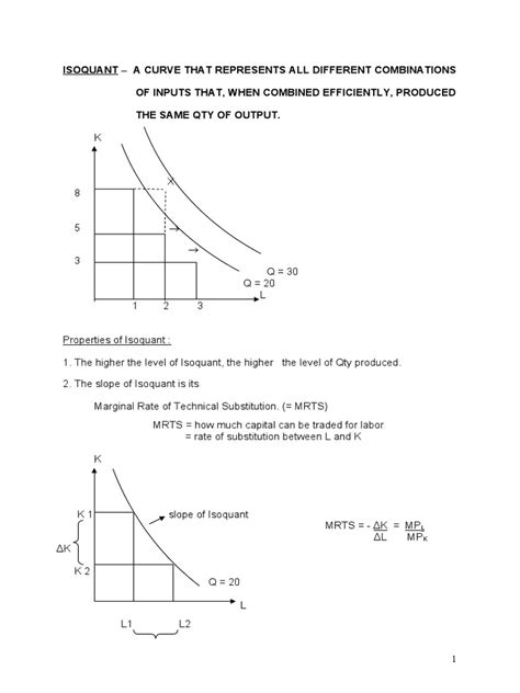 Alright, let’s kick things off with isoquants . The term ‘isoquant’ literally means ‘equal quantity.’ So, what does that actually mean in the world of economics, especially when we’re talking about production? An isoquant curve is a graphical representation that shows all the different combinations of two input factors – usually labor (L) and capital (K) – that can produce a specific, constant level of output. Imagine a company that makes, say, widgets. They can produce 100 widgets using 10 workers and 5 machines. But they could also produce those same 100 widgets using 8 workers and 6 machines, or maybe 12 workers and 4 machines. As long as the total output remains at 100 widgets, each of those combinations lies on the same isoquant. This concept is fundamental because it highlights the flexibility in production . Businesses aren’t locked into just one way of doing things; they have choices! The key thing to remember is that each isoquant represents a different level of output . So, an isoquant for 200 widgets will be different from an isoquant for 100 widgets. Generally, isoquant curves are downward sloping and convex to the origin . Why downward sloping? Because to produce the same output, if you increase the amount of one input (like labor), you must decrease the amount of the other input (like capital). Think about it: more workers might mean you need fewer machines to keep the output steady. Now, why convex to the origin? This relates to the diminishing marginal rate of technical substitution (MRTS) . As you substitute more and more of one input for another along an isoquant, the amount of the first input you need to give up to get one more unit of the second input decreases. It’s like saying, the more labor you add, the less capital you’re willing to sacrifice for each additional worker because the worker becomes relatively less productive compared to the capital. These curves are incredibly useful for visualizing the technical possibilities of production . They help economists and business managers understand the trade-offs involved when choosing between different combinations of inputs. The further an isoquant is from the origin, the higher the level of output it represents. So, a whole family of isoquants, often called an isoquant map , illustrates the entire production surface of a firm for different output levels. Understanding these maps allows us to analyze a firm’s production technology and its ability to substitute inputs. It’s all about finding the most efficient way to produce, and isoquants are the first step in mapping that efficiency landscape. They are a cornerstone of microeconomic theory, allowing us to model firm behavior and production decisions in a clear and visual manner.