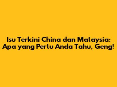Apa khabar semua? Hari ini kita nak sembang pasal isu-isu terkini yang melibatkan dua negara jiran yang rapat, China dan Malaysia. Korang tahu tak, hubungan dua hala antara negara kita ni memang macam rollercoaster, kadang naik, kadang turun, tapi sentiasa menarik untuk kita kupas. Dari aspek ekonomi sampai ke isu-isu sensitif macam Laut China Selatan, banyak benda yang sedang berlaku dan korang kena alert.