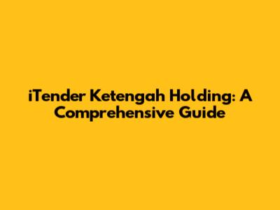 ITender Ketengah Holding: A Comprehensive Guide