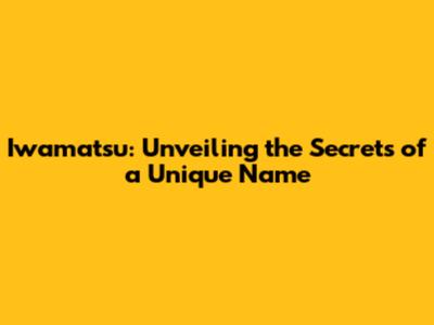 Iwamatsu: Unveiling The Secrets Of A Unique Name