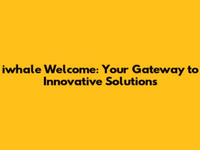 Iwhale Welcome: Your Gateway To Innovative Solutions
