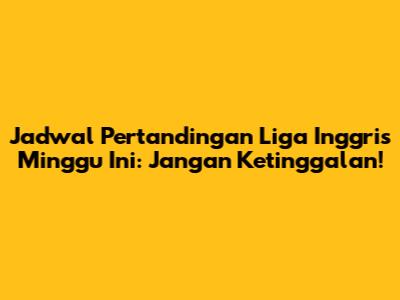 Berikut adalah jadwal lengkap pertandingan Liga Inggris minggu ini. Perhatikan tanggal, waktu, dan stasiun televisi yang menyiarkan agar kalian tidak kelewatan. Perubahan jadwal bisa saja terjadi, jadi stay tuned untuk informasi terbaru. Jadwal ini disusun berdasarkan waktu Indonesia Barat (WIB).