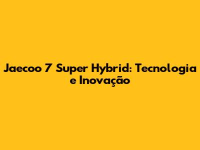 Jaecoo 7 Super Hybrid: Tecnologia E Inovação