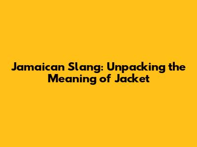 Jamaican Slang: Unpacking The Meaning Of 'Jacket'