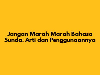 Jangan Marah Marah Bahasa Sunda: Arti Dan Penggunaannya