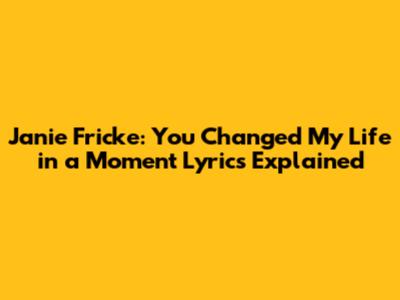 In conclusion, Janie Fricke's "You Changed My Life in a Moment" is more than just a song; it's a testament to the power of human connection and the profound impact a single person or event can have on our lives. The lyrics beautifully articulate the journey from a life perhaps lacking a certain something to one filled with newfound purpose, joy, and love. It’s a reminder that these life-changing moments can happen when we least expect them, often in the simplest of encounters. We should always be open to the possibilities that life presents and cherish the people who come into our lives and leave an indelible mark. So, the next time you hear this song, take a moment to reflect on the people and experiences that have changed your life. Let it be a reminder to appreciate the beauty of transformation and the enduring power of love. Keep listening, keep feeling, and keep cherishing those incredible moments! What are your thoughts on the lyrics? Let us know in the comments below!