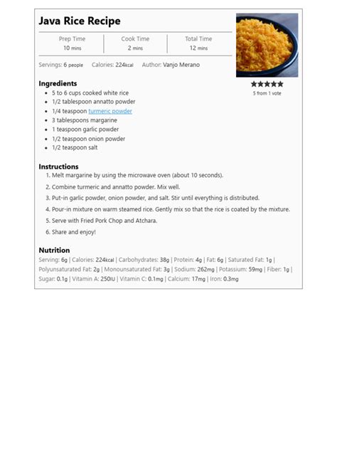 Alright, folks, the secret to fantastic Java Rice lies in the ingredients. Don’t worry; you probably have most of them already! Let’s break down the essential components and their roles in creating this culinary delight. First up, we’ve got the foundation: rice . You want to use long-grain rice like Jasmine or even the humble long-grain white rice. It holds its shape well when cooked and doesn’t get overly sticky. The right type of rice ensures the right texture for a perfect Java Rice. Avoid short-grain rice, as it tends to become too mushy. Next, we have the heart of the flavor: annatto seeds , or atsuete , as the Filipinos call it. These little seeds are what give Java Rice its distinctive golden-yellow hue and a subtle, earthy flavor. You can find them at Asian grocery stores or even online. The seeds are often steeped in hot water or oil to extract their color and flavor, infusing the rice with that characteristic appeal. Remember, a little goes a long way. To add some savory depth, we’ll need soy sauce . This adds a salty umami flavor that perfectly complements the sweetness of the other ingredients. Soy sauce is a staple in Filipino cuisine, and it plays a critical role in bringing out the flavors of the dish. Now for the magic touch, a bit of brown sugar or even granulated sugar. This is where the subtle sweetness comes into play, balancing the saltiness and creating that addictive flavor profile that we all love. Don’t be afraid to adjust the amount of sugar to your liking. Finally, some butter or margarine is added for richness and a touch of flavor. It also helps to create that fluffy texture that makes Java Rice so enjoyable. Of course, don’t forget the garlic and the onion ! These aromatics are essential for adding depth and complexity to the flavor. Sautéing them in butter before adding the rice is key to building a flavorful base. So, there you have it, folks! The essential ingredients for crafting the perfect Java Rice. Let’s get these ingredients ready, and let’s get cooking!