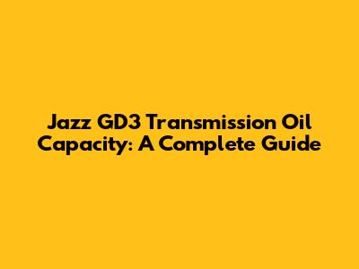 Jazz GD3 Transmission Oil Capacity: A Complete Guide