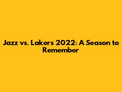 Jazz Vs. Lakers 2022: A Season To Remember