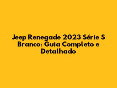 Jeep Renegade 2023 Série S Branco: Guia Completo E Detalhado
