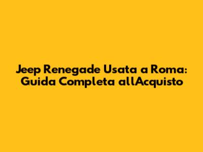 Jeep Renegade Usata A Roma: Guida Completa All'Acquisto