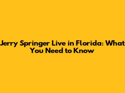 Jerry Springer Live In Florida: What You Need To Know