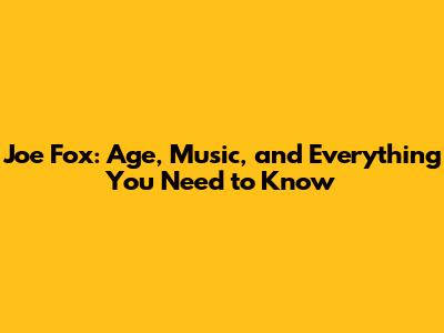 Joe Fox: Age, Music, And Everything You Need To Know