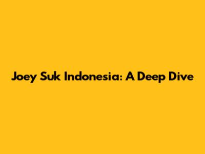 Joey Suk Indonesia: A Deep Dive