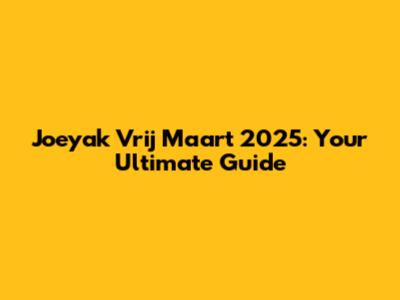 Joeyak Vrij Maart 2025: Everything You Need To Know