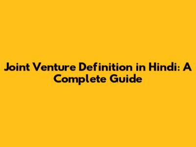Joint Venture Meaning In Hindi: A Complete Guide
