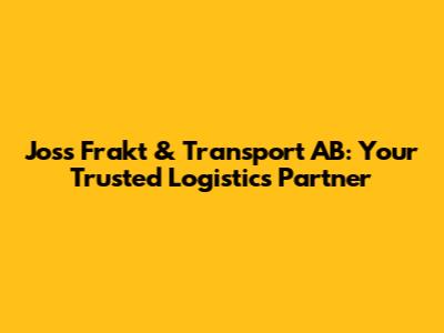 Unveiling Joss Frakt & Transport AB: A Comprehensive Overview