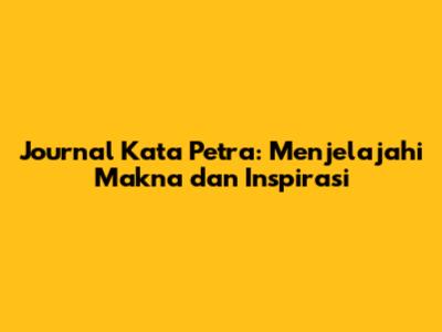 Apa Itu Journal Kata Petra?