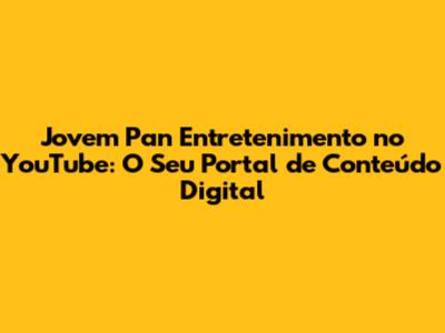 Jovem Pan Entretenimento No YouTube: Tudo O Que Você Precisa Saber