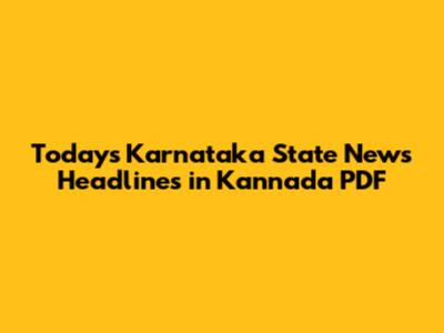 Karnataka News Headlines Today: Kannada PDF Download