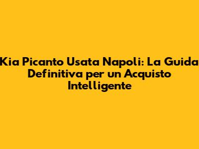 Kia Picanto Usata Napoli: La Guida Definitiva Per Un Acquisto Intelligente