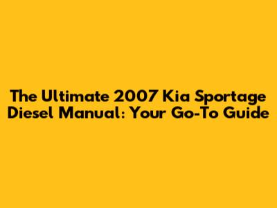 The Ultimate 2007 Kia Sportage Diesel Manual: Your Go-To Guide