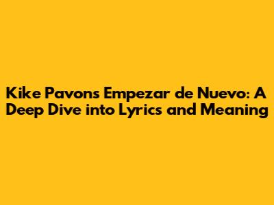 Hey music lovers! Today, we're diving deep into the soulful track "Empezar de Nuevo" by the incredibly talented Kike Pavon. We'll explore the lyrics, the emotions they convey, and what makes this song resonate so deeply with so many people. If you're a fan of Pavon, or just looking for some fresh music to vibe to, then you're in the right place! Let's get started, shall we?